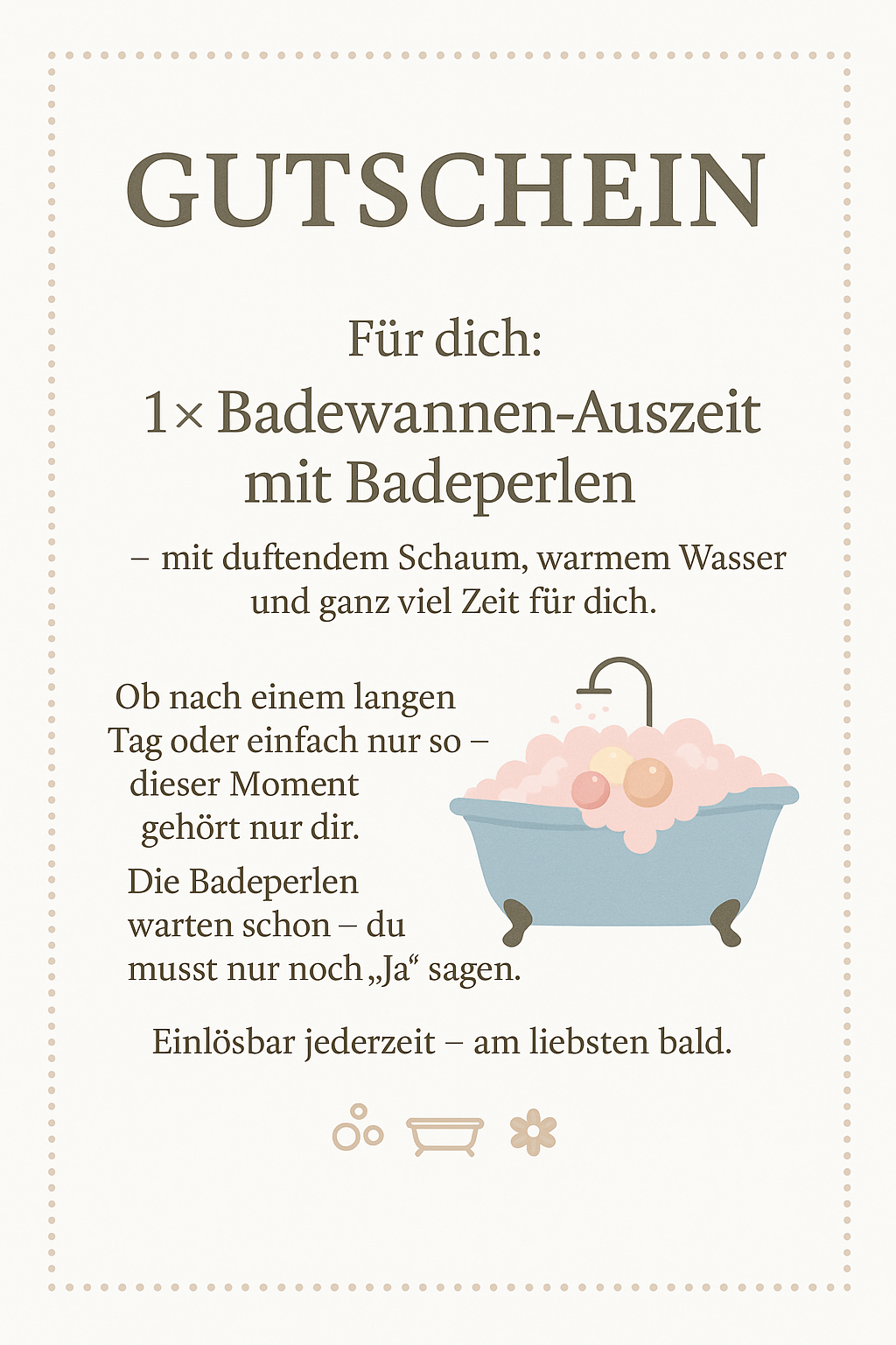 Eine Badeperle ins laufende warme Wasser geben, zurücklehnen und genießen!